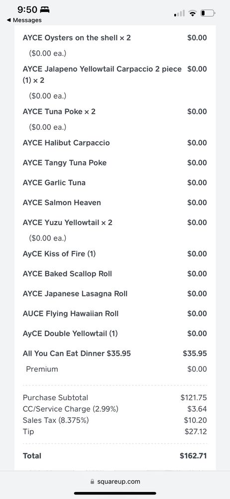 “ This place is more of a grab and go sushi place, but they do have seating available, although it's limited. If I'm craving sushi and just want to grab some on the way home, this is my go to spot. I've dined here a couple of times. I've ordered both through Uber Eats and their website, and they're pretty fast and consistent. Ordering through their website is not the most user friendly when you're in a hurry, but I've managed. They always have deals going on. Last deal was 2 premium sushi rolls for $20. All sushi comes with wasabi and soy sauce, but you can get extra sauce like ponzu for a few cents more. My go to sushi rolls are the Kelly Crunch, Knight Time, and Something Wrong 69. They all taste great with or without soy sauce or ponzu, but I still like to dip everything in ponzu. Great neighborhood to go sushi spot. ”