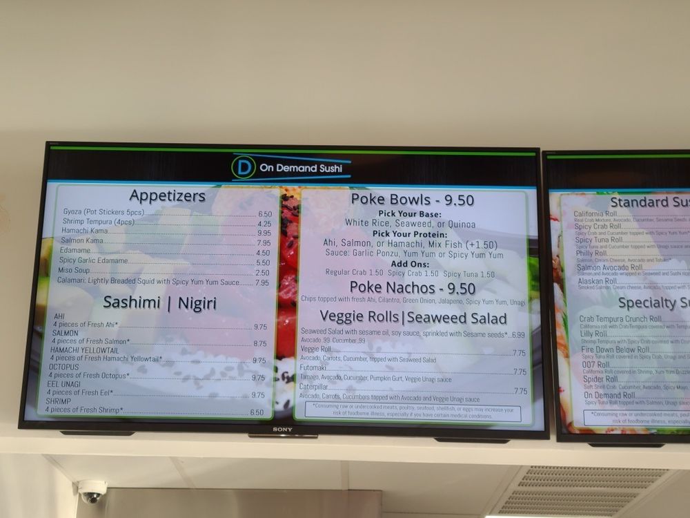“ On Demand is a great take out option but not so practical for dining in. This location is very small with only a few tables and the way the building is facing it gets super hot with the sun shining in. That said, for taking out their sushi boats are a great option. They're cute, practical and awesome for group gatherings. They have a good amount of options for rolls and appetizers. My favorites were the avocado bomb, On Demand roll, GG Special roll and Orange Blossom roll. ”